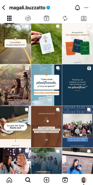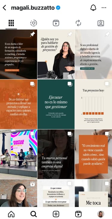 Este es el feed de Maga antes y después de tener Dirección Creativa. Ella llegó diciendo que tenía el feed con demasiada información y estaba horas diseñando.
