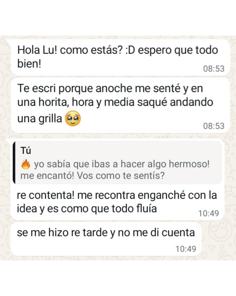 Después lo vemos juntas en un encuentro en vivo. Ajustamos lo necesario y elegís la propuesta que más te cierra.